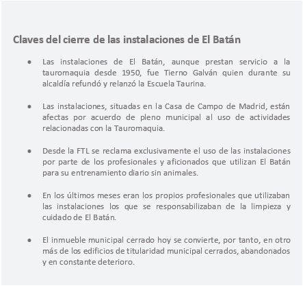 Ante el cierre de las instalaciones de La Venta El Batán por el Ayuntamiento de Madrid que ha tenido lugar hoy, miércoles 24 de enero, la Fundación del Toro de Lidia anuncia que trabajará en todos los frentes tras este ataque a la libertad.