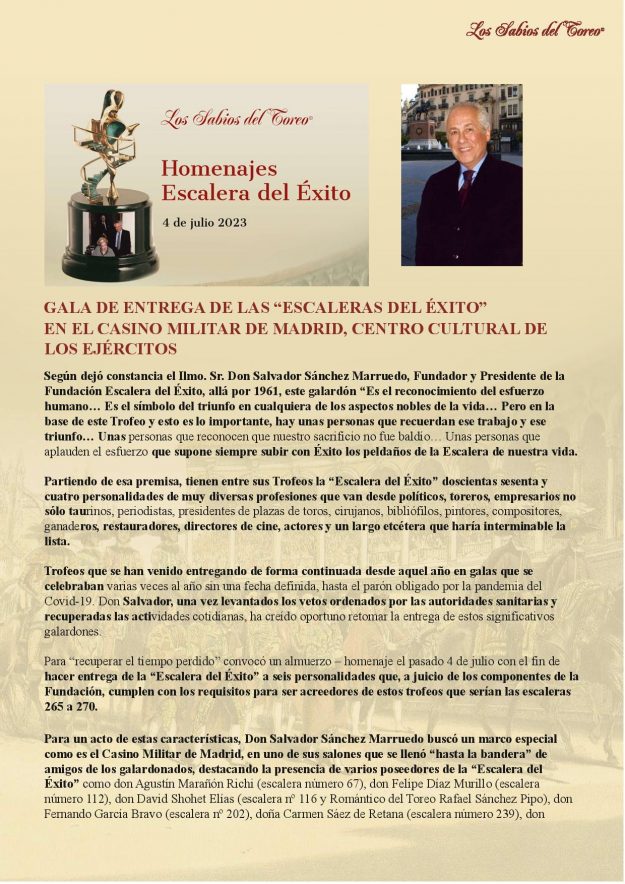 La exposición, promovida por Bankpyme y la Fundación Escalera del Éxito, fue acogida con gran éxito de público el pasado mes de noviembre en los locales de la Sede del banco madrileño. Los premiados, fueron Asunción Rubio y Miguel Ángel Hernández López, quienes recibieron cada un cuadro taurino original de Paloma Camiña. Paloma Camiña expone en Madrid