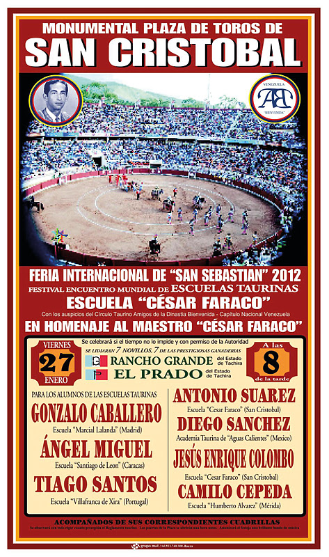 San Cristóbal: magno Festival de Escuelas Taurinas en homenaje a César Faraco 2012, HemerotecaPor Claudia Starchevich24 enero, 2012 Fuente deltoroalinfinito.blogspot.com