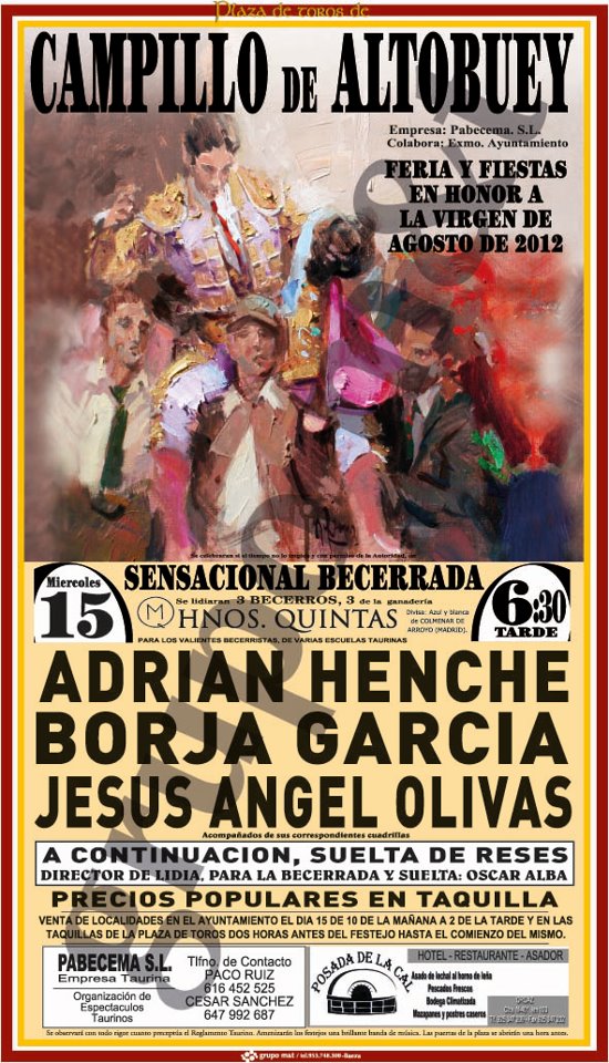En su sustitución salió el enorme castaño oscuro. Muy abundante de cabeza, cornivuelto y de gran lámina. Huesudo y hecho. Levantaba la cabeza por encima de las tablas y barbeando resoplaba aire por la nariz. Bronco y difícil dio tres terribles caídas a la cabalgadura; se plantó en los medios y fue imposible torearlo por el respeto y el terror que infundía a los coletudos; le dieron un pinchazo y media con tan buena suerte que el bicharraco cayó muerto en la arena (…)