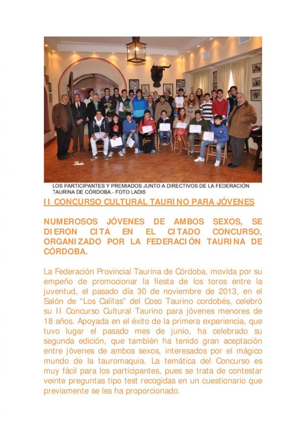 Concurso infantil organizado por la Federación Provincial Taurina de Córdoba 2013, HemerotecaPor Claudia Starchevich11 diciembre, 2013 Informa UFTAE