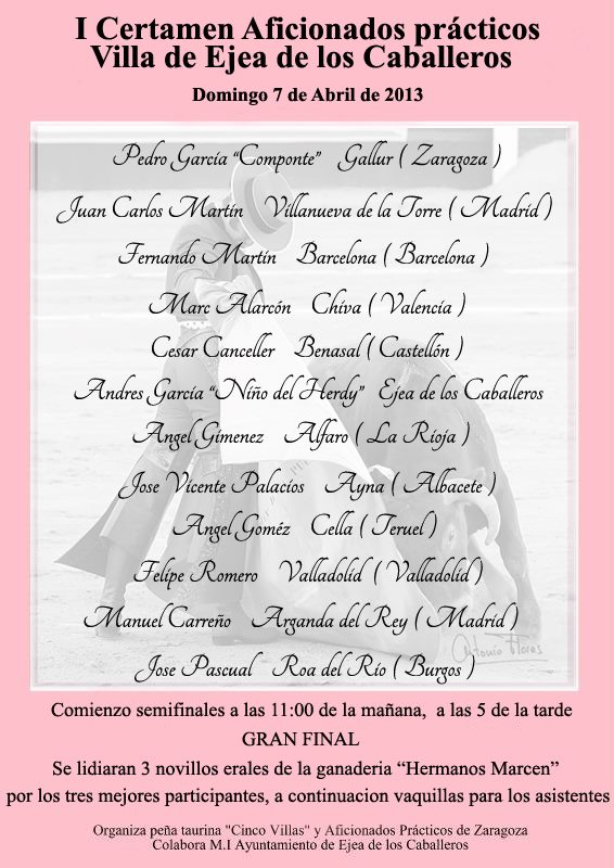 I Certamen Aficionados Prácticos Villa de Ejea de los Caballeros 2013 2013, HemerotecaPor Claudia Starchevich5 abril, 2013 Informa Luis Gómez