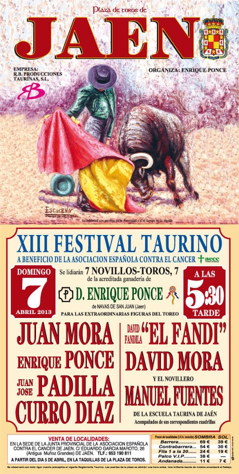 Plaza de Toros de Jaén 2013 2013, HemerotecaPor Claudia Starchevich5 abril, 2013 Informa R.B Producciones Taurinas