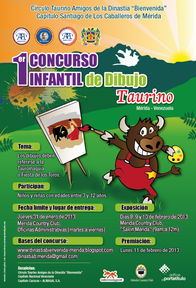 I Concurso Infantil de Dibujo Taurino 2013, HemerotecaPor Claudia Starchevich1 enero, 2013 Informa desde Venezuela. Dinastía Bienvenida Capítulo Santiago de Los Caballeros de Mérida