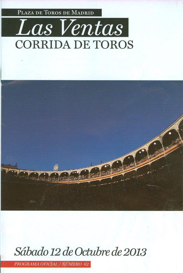 Madrid 12 de octubre 2013. Monumental de Las Ventas. Corrida de toros fin de temporada 2013, HemerotecaPor Claudia Starchevich14 octubre, 2013Un festejo más en el que hubo poco que destacar de torería y toros(…) Informa José Julio García. Decano de la crítica taurina