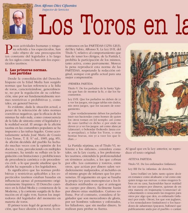 Los Toros en la Historia Jurídica. (1/4) 2013, HemerotecaPor Claudia Starchevich3 octubre, 2013 Informa Alfonso Díez Cifuentes