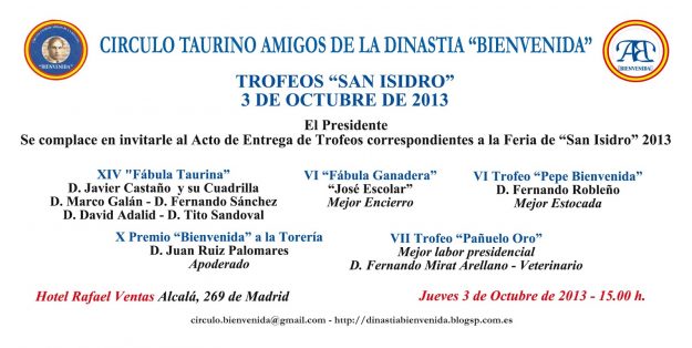 XLI Trofeos Taurinos Casa de Córdoba en Madrid 2013, HemerotecaPor Claudia Starchevich3 octubre, 2013 Informa Redacción Sabios del Toreo
