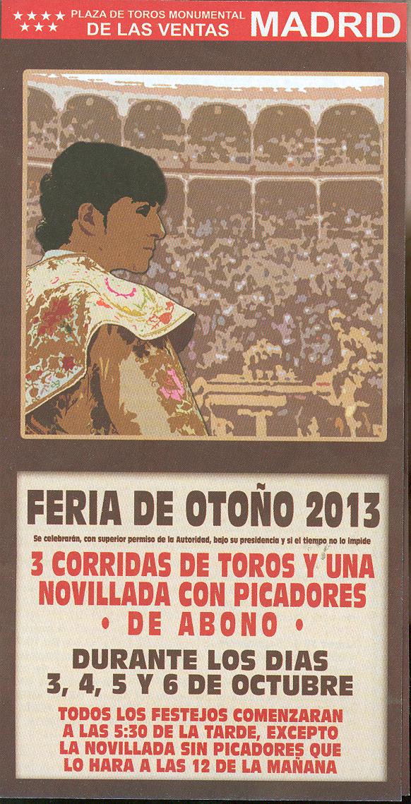 Madrid 3 de octubre 2013. Monumental de Las Ventas 2013, HemerotecaPor Claudia Starchevich4 octubre, 2013Feria de otoño primer festejo (…) Informa José Julio García. Decano de la crítica taurina