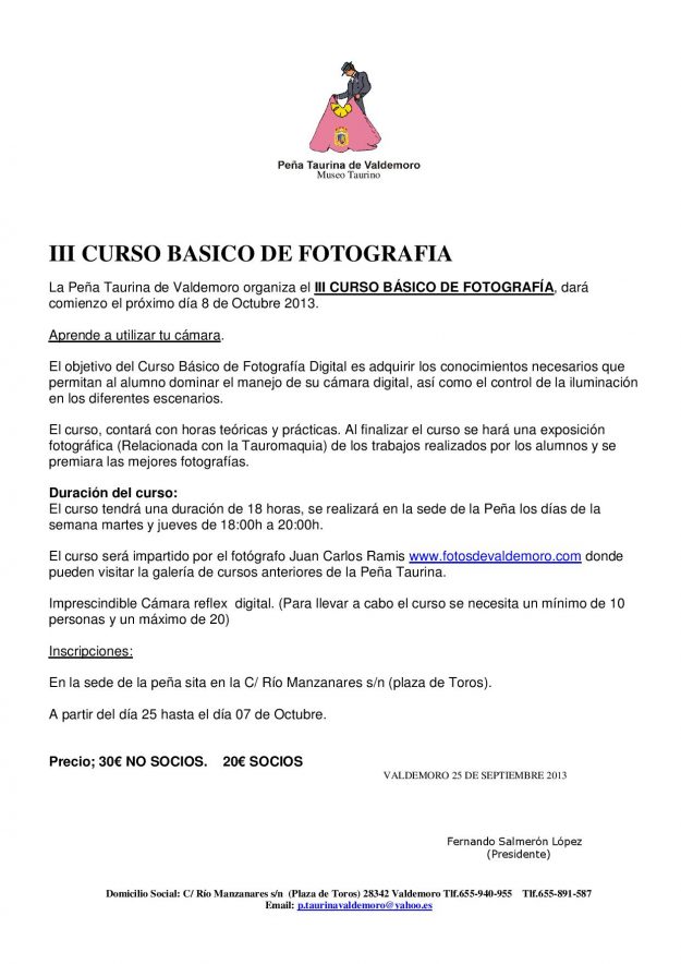 III Concurso Básico de Fotografía. Peña Taurina de Valdemoro 2013, HemerotecaPor Claudia Starchevich4 octubre, 2013 Informa Redacción Sabios del Toreo