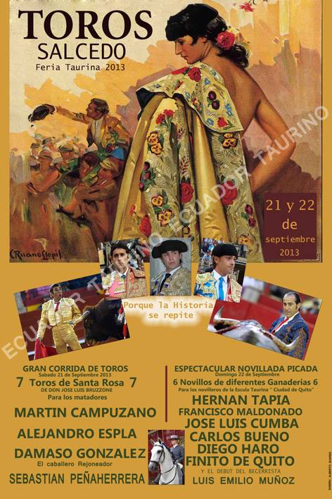 Toros Salcedo. Feria Taurina 2013 2013, HemerotecaPor Claudia Starchevich19 septiembre, 2013 Informa desde Ecuador. Ecuador Taurino