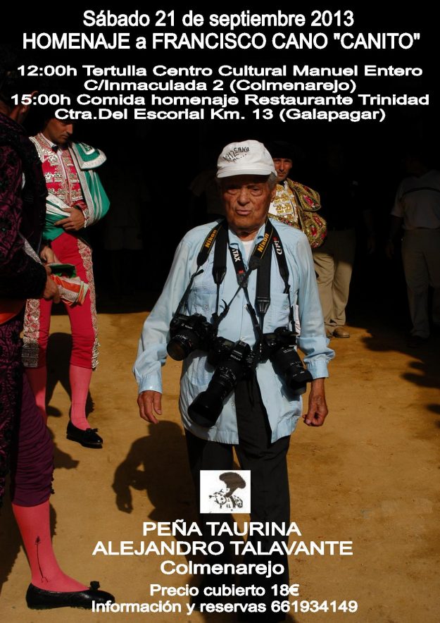 Peña Taurina Alejandro Talavante de Colmenarejo rendiré homenaje a Francisco Cano – Canito 2013, HemerotecaPor Claudia Starchevich18 septiembre, 2013 Informa Redacción Sabios del Toreo