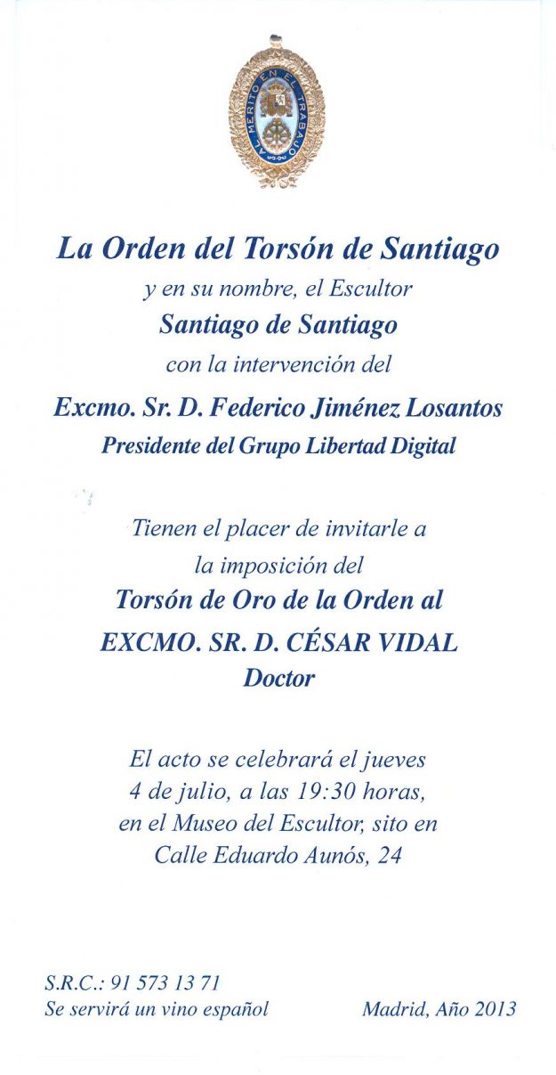 La Orden del Torsón de Santiago al Excmo. Sr. César Vidal 2013, HemerotecaPor Claudia Starchevich2 julio, 2013 Informa Redacción Sabios del Toreo