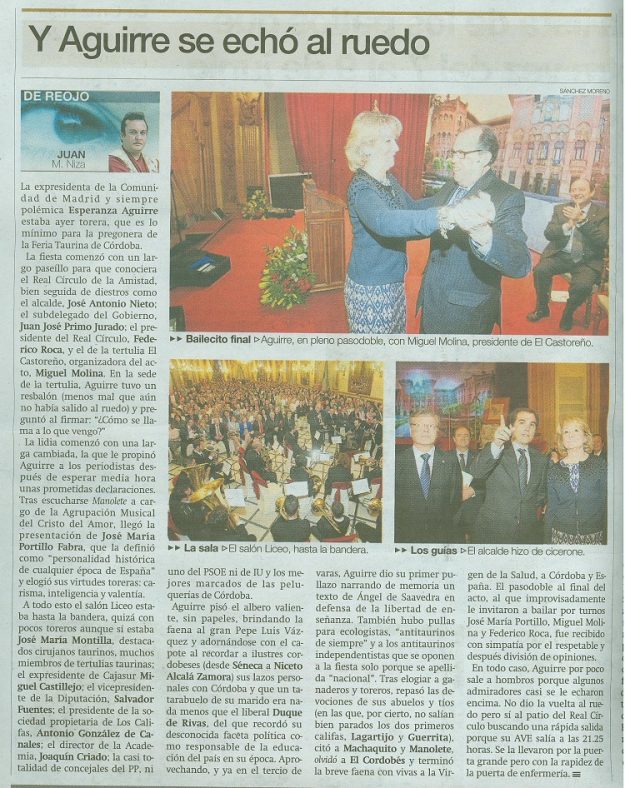 Y Aguirre se echó al ruedo. XXIV Pregón Taurino. Feria de Córdoba 2013 2013, HemerotecaPor Claudia Starchevich3 julio, 2013 Informa Redacción Sabios del Toreo Fotogalería Feria de Córdoba 2013