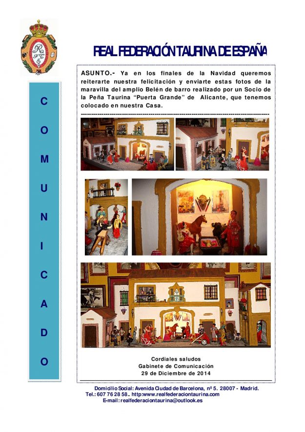 Belén Taurino de la Real Federación Taurina de España 2014, HemerotecaPor Claudia Starchevich31 diciembre, 2014 Informa Real Federación Taurina de España