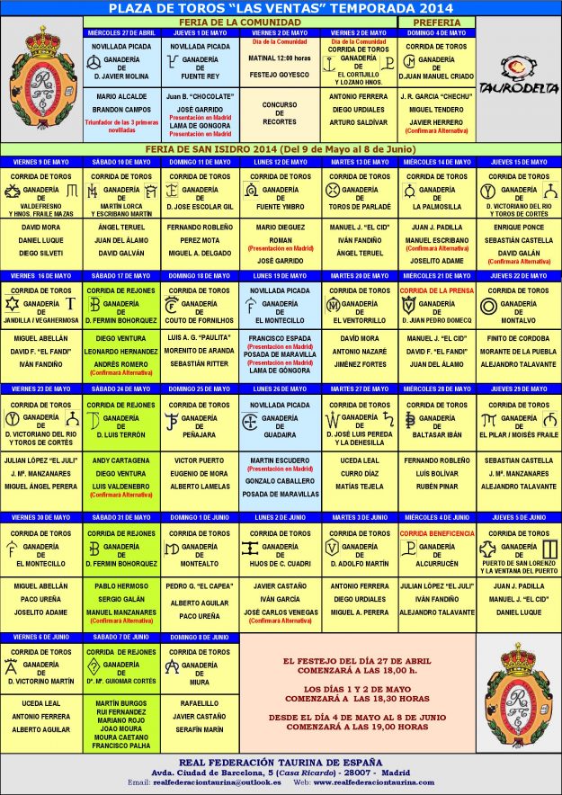 Plaza de Toros de Las Ventas. Temporada 2014 2014, HemerotecaPor Claudia Starchevich30 marzo, 2014 Informa Real Federación Taurina de España