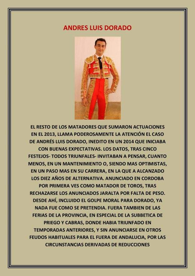 Temporada de Andrés Luis Dorado 2014, HemerotecaPor Claudia Starchevich1 diciembre, 2014 Informa José Luis Cuevas Flores