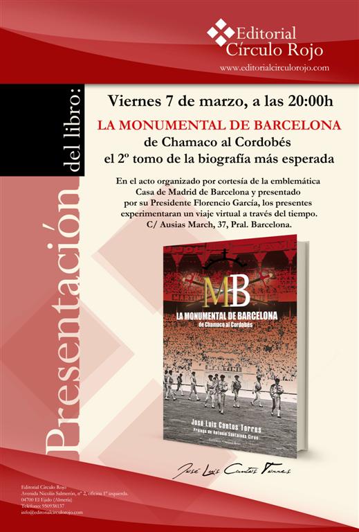 Presentación del libro LA MONUMENTAL DE BARCELONA de Chamaco al Cordobés 2014, HemerotecaPor Claudia Starchevich3 marzo, 2014 Informa José Luis Cantos Torres. Biógrafo de la Monumental de Barcelona