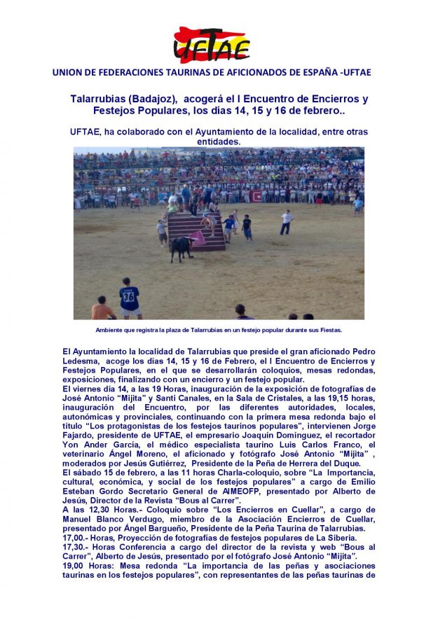 I Encuentro sobre Encierros y Festejos Populares en Talarrubias 2014, HemerotecaPor Claudia Starchevich14 febrero, 2014 Informa C. Starchevich