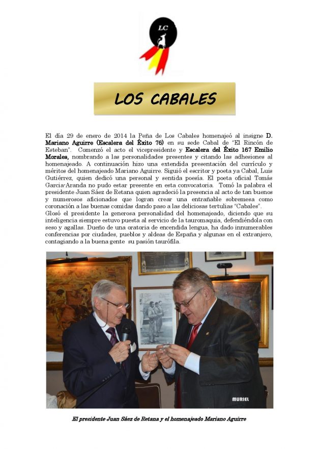 Homenaje a Don Mariano Aguirre, Escalera del Éxito 76 en Los Cabales 2014, HemerotecaPor Claudia Starchevich11 febrero, 2014 Informa Juan Sáez de Retana