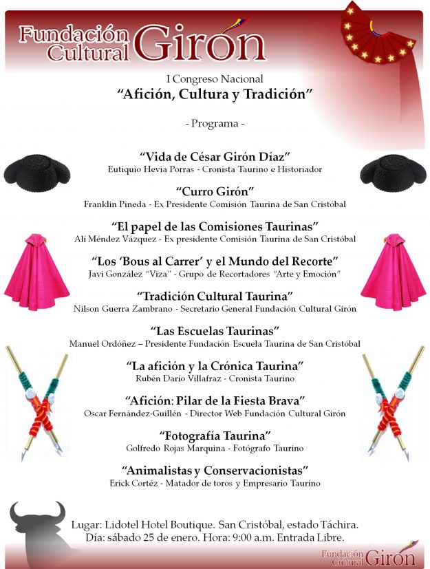 I Congreso Nacional Afición, Cultura y Tradición 2014, HemerotecaPor Claudia Starchevich24 enero, 2014 Informa desde Venezuela. Fundación Cultural Girón