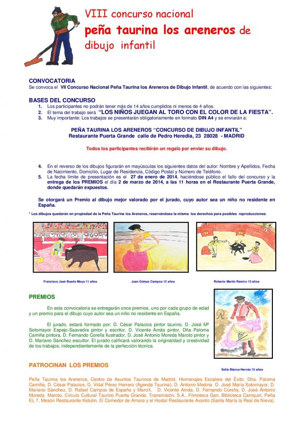 VIII Concurso Nacional Peña Taurina Los Areneros de dibujo infantil 2014, HemerotecaPor Claudia Starchevich20 enero, 2014 Informa José Ramón Gallego