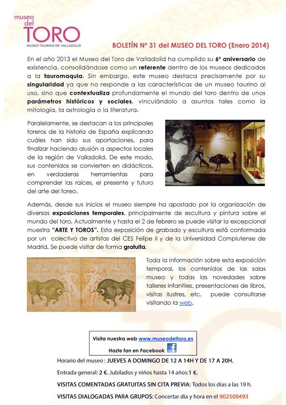 Boletín nº 31 Museo del Toro de Valladolid 2014, HemerotecaPor Claudia Starchevich10 enero, 2014 Informa Eneritz López