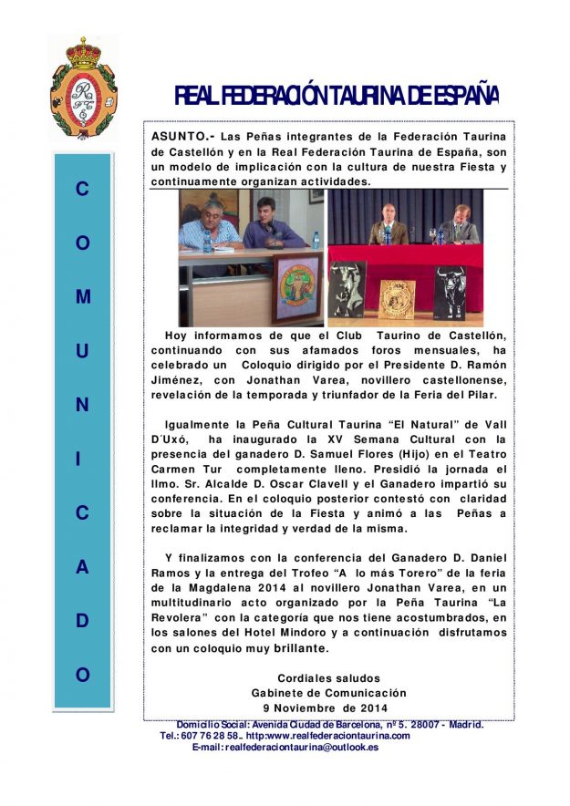 Coloquio Club Taurino de Castellón 2014, HemerotecaPor Claudia Starchevich13 noviembre, 2014 Informa Real Federación Taurina de España