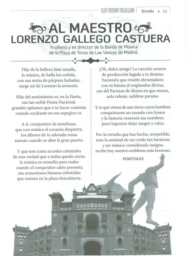 Al Maestro Lorenzo Gallego Castuera. Escalera del Éxito 87 2014, HemerotecaPor Claudia Starchevich26 diciembre, 2014 Fuente: Revista Brindis