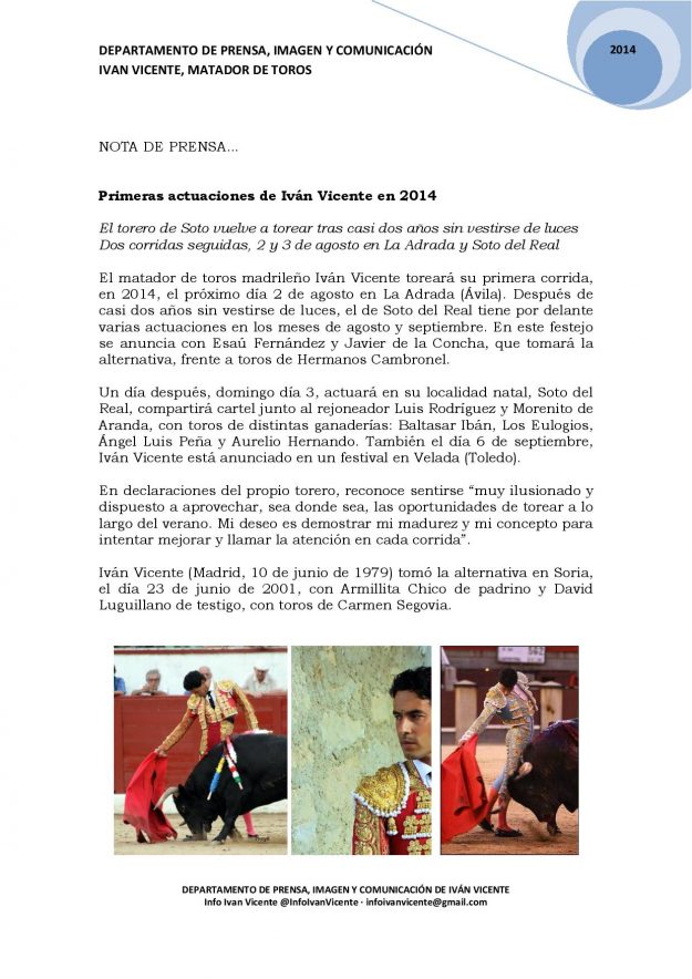 Primeras actuaciones de Iván Vicente en 2014 2014, HemerotecaPor Claudia Starchevich1 agosto, 2014 Informa Comunicación Iván Vicente