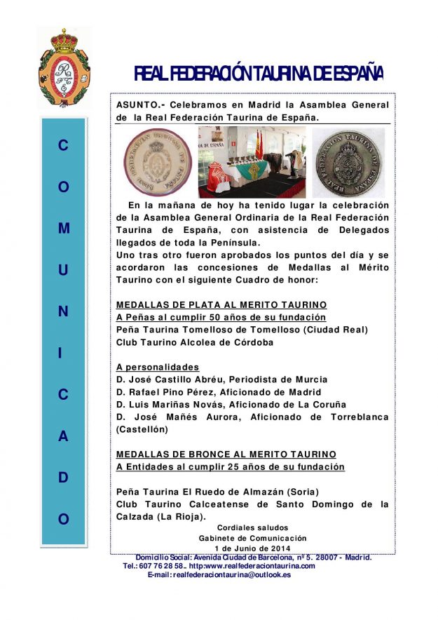 Celebrada en Madrid la Asamblea General de la Real Federación Taurina de España