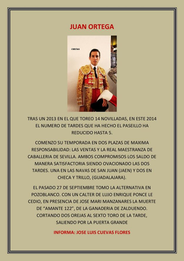 Temporada de Juan Ortega 2014, HemerotecaPor Claudia Starchevich10 diciembre, 2014 Informa José Luis Cuevas Flores