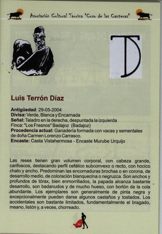 Ganadería Luis Terrón Díaz 2015, HemerotecaPor Claudia Starchevich15 diciembre, 2015 Informa Asoc. Cultural Taurina «Coso de las Canteras»