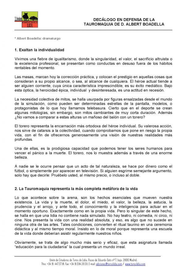 Decálogo en defensa de la Tauromaquia (2/2) 2015, HemerotecaPor Claudia Starchevich6 mayo, 2015 Informa Albert Boadella