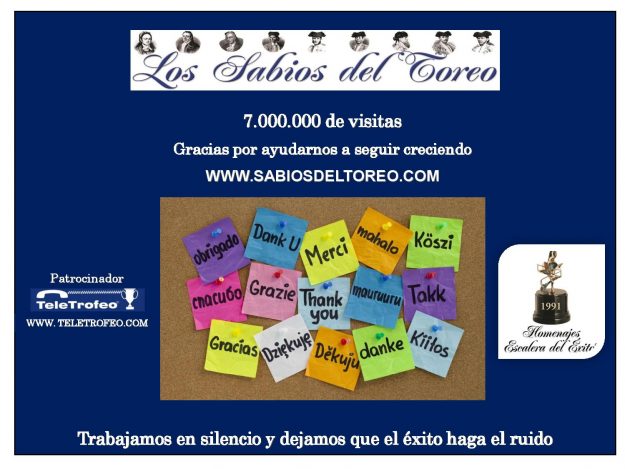 Hemos alcanzado más de 7.000.000 de visitas! 2015, HemerotecaPor Claudia Starchevich25 abril, 2015 Informa Redacción Sabios del Toreo