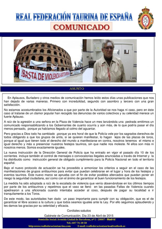 Circular Dirección General de la Policía remitida a toda España 2015, HemerotecaPor Claudia Starchevich24 abril, 2015 Informa Real Federación Taurina de España