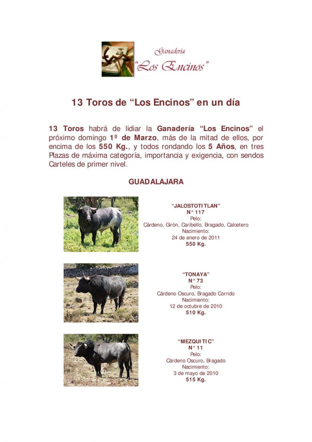13 Toros de `Los Encinos´ en un día 2015, HemerotecaPor Claudia Starchevich28 febrero, 2015 Informa Fiesta Brava