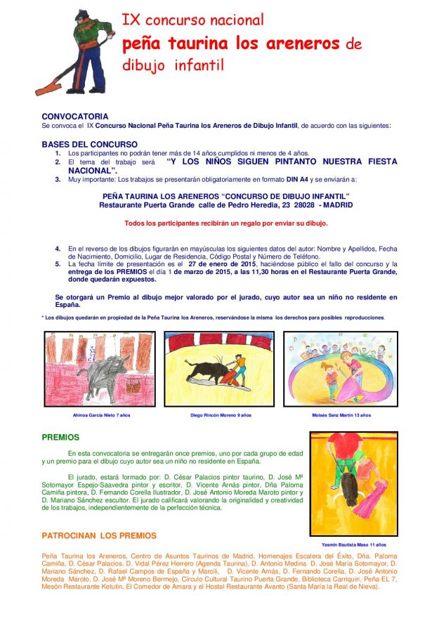 IX Concurso Nacional de dibujo infantil. Peña Taurina Los Areneros 2015, HemerotecaPor Claudia Starchevich19 enero, 2015 Informa José Ramón Gallego