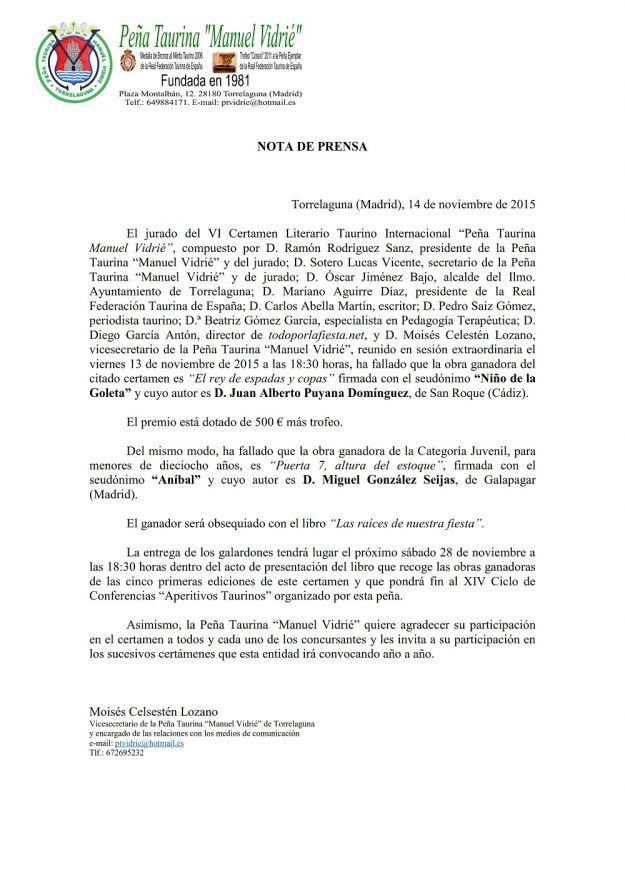 Entre los galardonados, figuran los hierros de Ignacio López Chaves y Hermanos González, premiados como mejor ganadería y mejor novillo respectivamente (…)