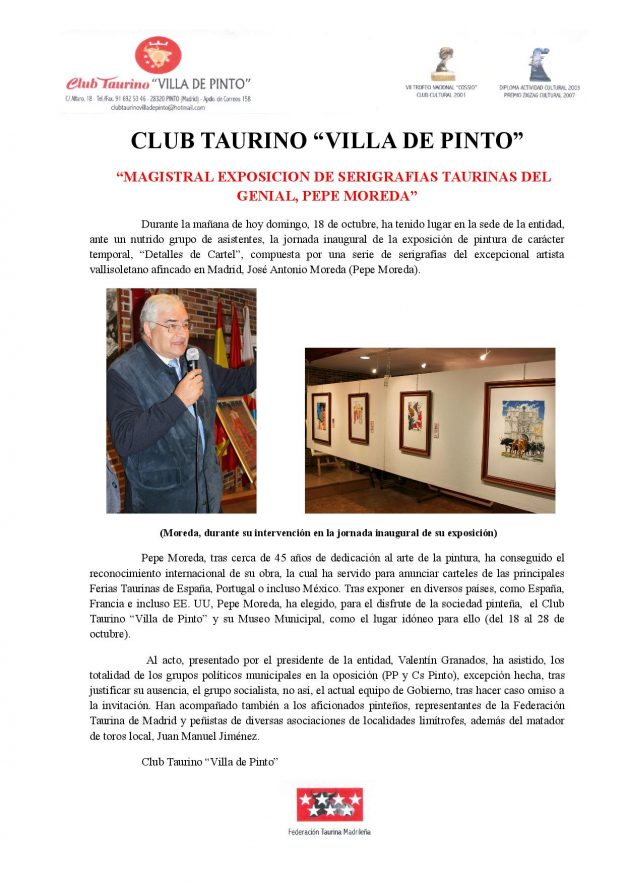 Exposición Pintura Pepe Moreda. Escalera del Éxito 218 2015, HemerotecaPor Claudia Starchevich23 octubre, 2015 Informa Club Taurino «Villa de Pinto»