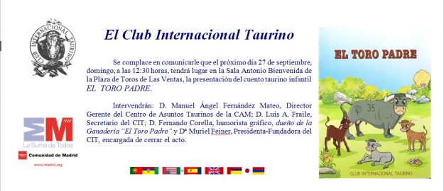 Presentación del libro infantil `EL TORO PADRE´ 2015, HemerotecaPor Claudia Starchevich26 septiembre, 2015 Informa Luis A. Fraile