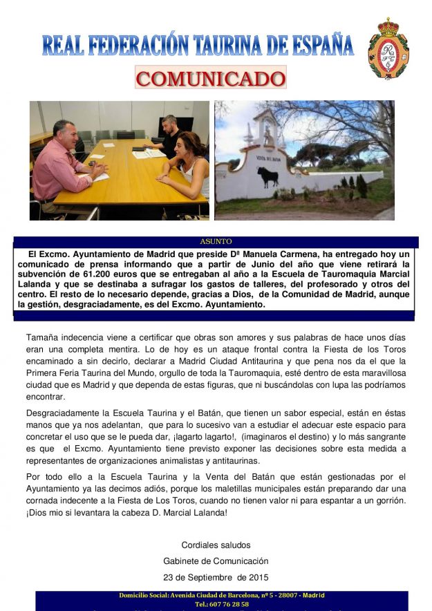 La Escuela de Madrid y El Batan 2015, HemerotecaPor Claudia Starchevich25 septiembre, 2015 Informa Real Federación Taurina de España
