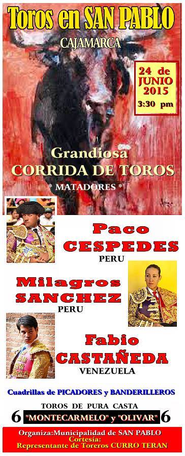 Toros en San Pablo 2015 2015, HemerotecaPor Claudia Starchevich24 junio, 2015 Informa desde Perú. Miriam Herrera