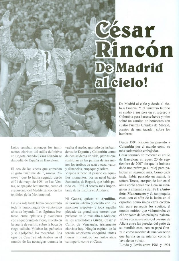 César Rincón. De Madrid al cielo 2016, HemerotecaPor Claudia Starchevich12 septiembre, 2016Fuente: La Mejor Revista de Toros