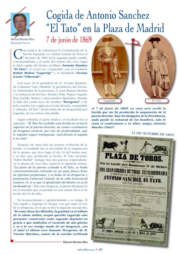 Cogida de Antonio Sánchez `El Tato ´en la Plaza de Madrid 2016, HemerotecaPor Claudia Starchevich13 agosto, 2016 Informa Manuel Montes Mira