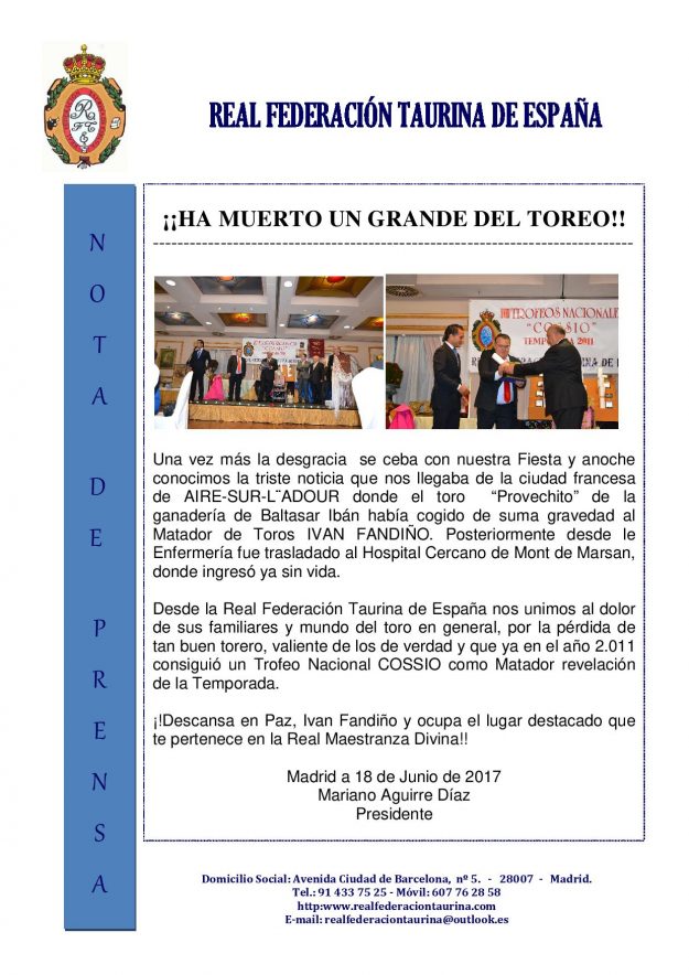 Ha fallecido el matador de toros Gregorio Sánchez (Escalera del Éxito 50), figura del toreo de finales de los años 50 y de los 60., además de dirigir brillantemente la Escuela de Tauromaquia Marcial Lalanda de Madrid, en la que bajo su dirección dio a la Tauromaquia grandes figuras del toreo. En nombre de la…