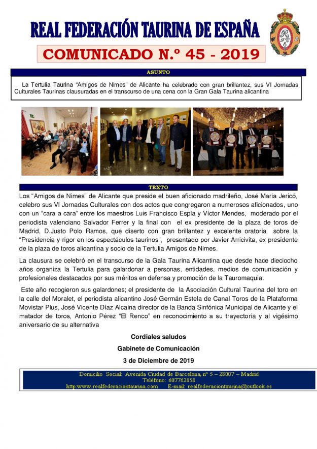 Los salones del Hotel Rafael Ventas vivieron ayer una jornada con sabor taurino invernal. Convocados por el CIT se reunieron más de 90 personas con motivo del tradicional acto de nombramiento de Socios de Honor que viene realizando periódicamente este Club a personas que han destacado en la promoción y defensa de la Tauromaquia. Como…