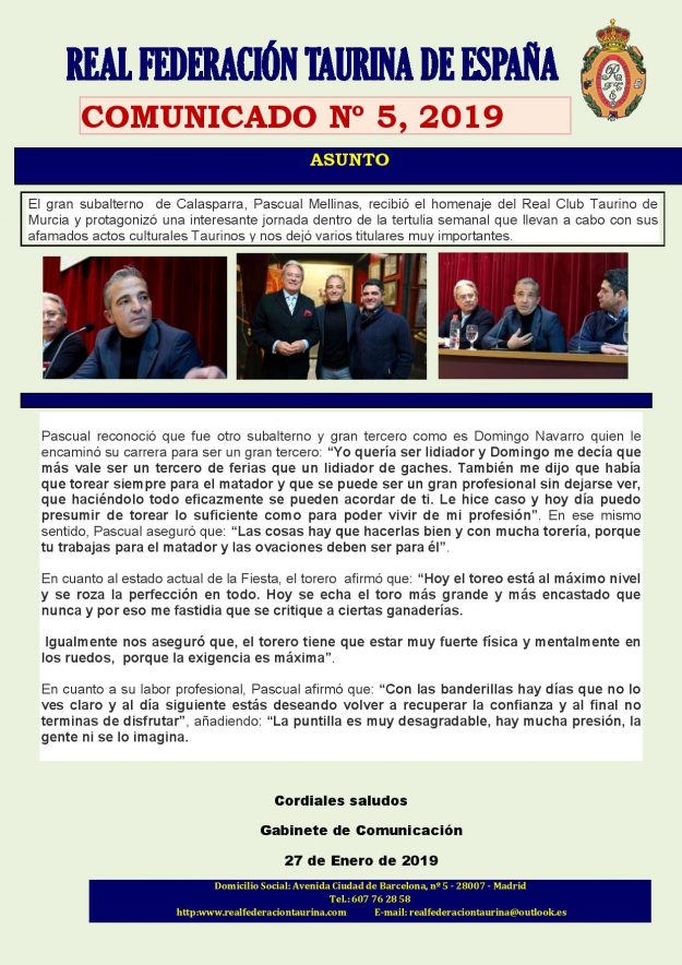 El pasado 22 de enero, tuvo lugar un almuerzo – homenaje organizado por la Tertulia de Amigos del Conde de Colombí y que fue dedicado al propietario de la ganadería de Montealto. El acto tuvo lugar en la sede de la Tertulia, el famoso y castizo restaurante madrileño “Casa Ciriaco”, en la calle Mayor, 84,…