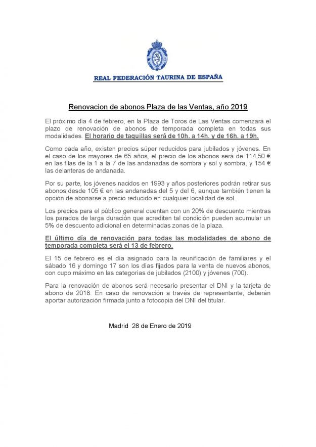 Abonos Plaza de Toros de Madrid 2019