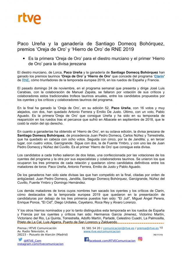Homenaje de la Tertulia de Amigos del Conde de Colombí al torero Andrés Hernando (Escalera del Éxito nº 19 y Reconocimiento Un Romántico del Toreo Rafael Sánchez “Pipo”) – Para + info haz clic👆 🇪🇸