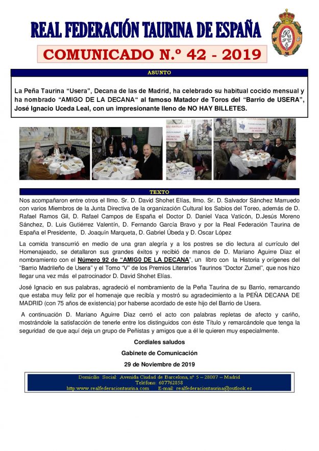 Los componentes de la Tertulia de Amigos del Conde de Colombí han dedicado un merecido homenaje al torero segoviano, de La Velilla, hoy ganadero, Andrés Hernando García (Escalera del Éxito nº 19 y Reconocimiento Un Romántico del Toreo Rafael Sánchez “Pipo”). El acto tuvo lugar en el castizo restaurante Casa Ciriaco de la calle Mayor…